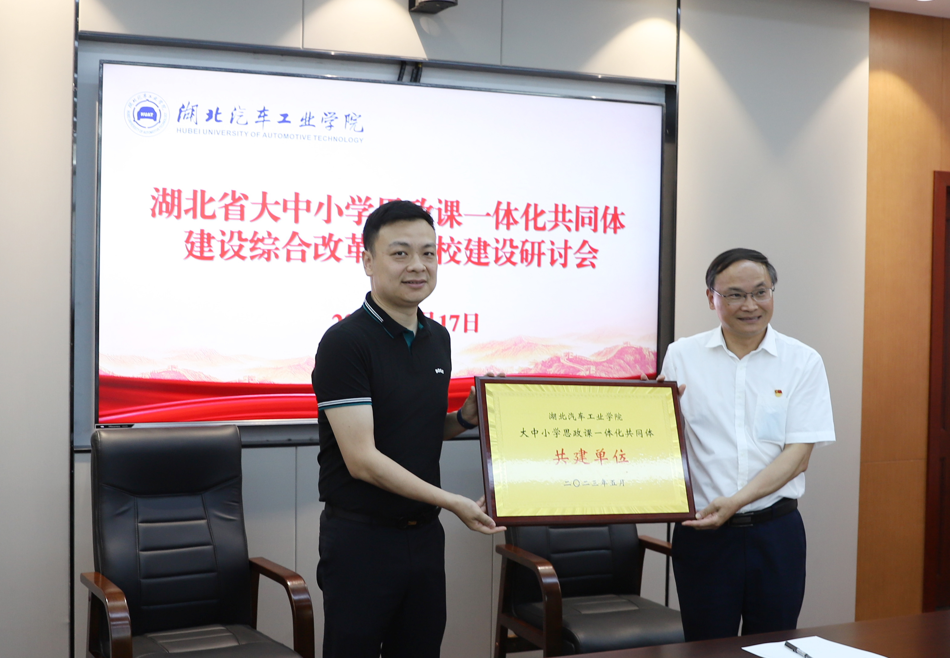 李涛指出,落实《湖北省教育厅关于推进全省大中小学思政课一体化共同体建设的指导意见》等文件精神,推进大中小学思政课一体化共同体建设综合改革示范校建设,我们责无旁贷。学校牵头获批湖北省大中小学思政课一体化共同体建设综合改革示范校,是对学校长期以来重视思想政治理论课建设并取得一定成绩的肯定。学校要依托汽车文化、武当文化、汉水文化、红色文化等具有十堰特色的优势资源,和共同体建设单位一同打造好思政教育新品牌。要抓好机制创新,建立共同体建设单位深度联系机制,架构“1+9+N”共同体模式,以共同体学校为主体,将相关区域学校也纳入思政教研体系之中。要抓好形式创新,根据大中小学育人方式的差异和特点,做好各单位对接互训,利用学校课程思政研究中心的平台优势,支持其它学校教师申报、参与相关课题。要抓好创新,坚持问题导向,探索如何将中小学与大学的思政教学内容合理对接。要抓好成效创新,共建青年视频号、红色领航网、汽车强国课、数字思政库和实践基地群。共同体建设单位要善思善谋,建好用好大中小学思政课一体化共同体建设平台,早出多出高质量成果。