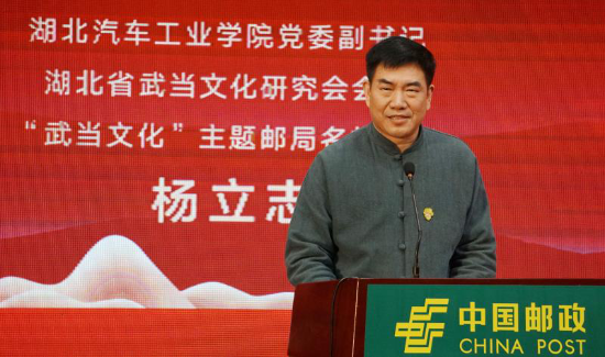 2019年湖北邮政文化主题邮局名誉局长高端访谈现场,我校党委副书记、湖北省武当文化研究会会长、“武当文化”主题邮局名誉局长杨立志引经据典纵论武汉武当文化渊源。
