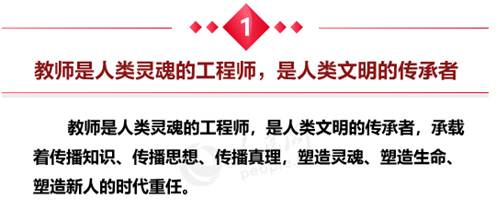 9月10日是我国第三十四个教师节,习近平代表党中央,向全国广大教师和教育工作者致以节日的热烈祝贺和诚挚问候。他强调,长期以来,广大教师贯彻党的教育方针,教书育人,呕心沥血,默默奉献,为国家发展和民族振兴作出了重大贡献。教师是人类灵魂的工程师,是人类文明的传承者,承载着传播知识、传播思想、传播真理,塑造灵魂、塑造生命、塑造新人的时代重任。