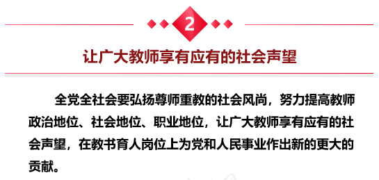 全党全社会要弘扬尊师重教的社会风尚,努力提高教师政治地位、社会地位、职业地位,让广大教师享有应有的社会声望,在教书育人岗位上为党和人民事业作出新的更大的贡献。