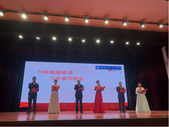 9月30号,威廉williamhill庆祝新中国成立70周年诗词朗诵会在大礼堂举行。本次活动由校工会主办,14个分会报送的14个节目参加。我院报送的《时代礼赞》节目在演出活动中脱颖而出,喜获一等奖。