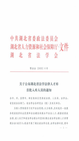 本网讯(文/图 郑实)近日,中共湖北省委政法委员会、湖北省人力资源和社会保障厅、湖北省法学会联合印发《关于公布湖北省法学法律人才库首批入库人员通知》,我校WilliamHill威廉希尔安军博士入选湖北省青年法学法律人才,成为首批入库人员。