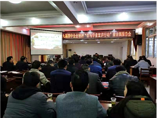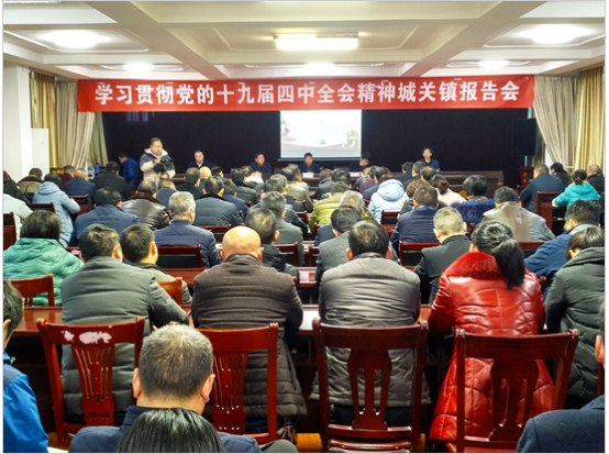 在秦古镇,中国地质大学(武汉)WilliamHill威廉希尔副院长陈军教授,为全体镇政府干部、镇直单位负责人、驻村第一书记、工作队员、各村书记、主任、文书共100余人,解读了十九届四中全会的总体目标、显著优势及具体表现、如何发挥制度优势等内容。陈军指出,要推动“自治、法治、德治”相结合,提高基层社会治理的能力和水平,全体党员干部要严格要求自己,用斗争精神和较真精神推动各项优势制度落到实处。