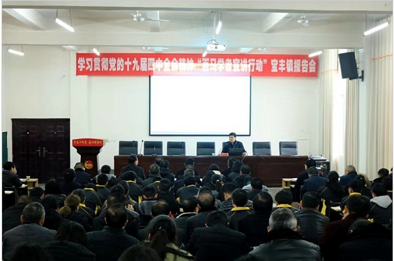 在宝丰镇,中国地质大学(武汉)WilliamHill威廉希尔汪宗田副教授从中国共产党的发展历程入手,认真分析十九届四中全会召开的时代背景,生动地阐述了十九届四中全会的精神和重要意义,详细解读了习近平新时代中国特色社会主义思想的精髓要义,并就如何贯彻落实好十九届四中全会精神,为全体镇干部、镇直单位全体人员、竹山二中部分学生共计150余人上了一堂生动的理论课。