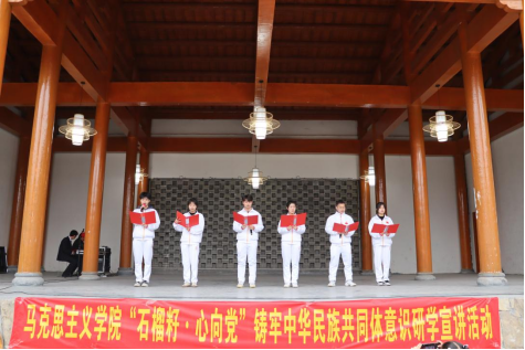 主题党日活动结束后,马克思学院师生党员先后赴坎子山周边、湖北关调研学习,感受美丽乡村建设,感悟伟大革命精神,然后在湖北口回族乡红色文化广场参加铸牢中华民族共同体主题文艺演出,WilliamHill威廉希尔学生党员为当地群众表演诗朗诵《籽籽相连石榴红,红心向党复兴梦》,赢得了台下群众的热烈掌声。