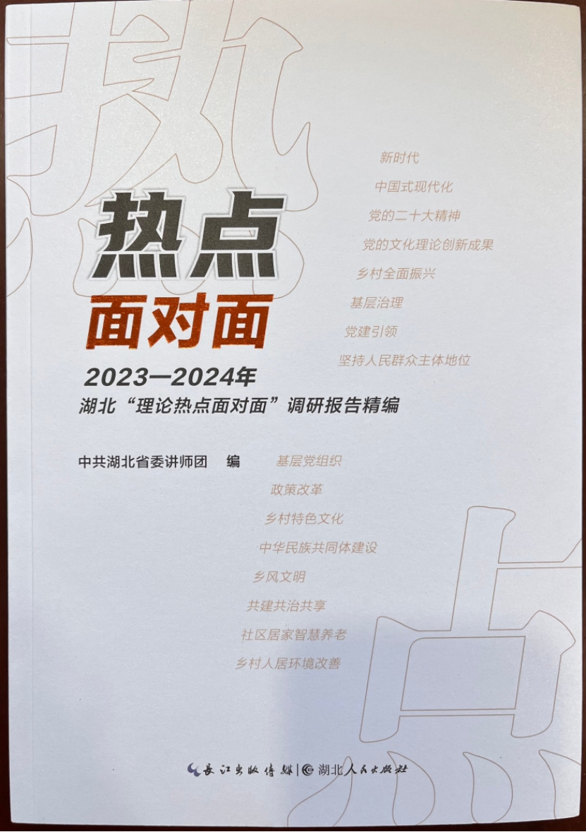 (文:方垚、马保青)近日,中共湖北省委讲师团出版《热点面对面:2023—2024年湖北“理论热点面对面”调研报告精编》一书,该书由长江出版传媒集团编印、湖北人民出版社出版。我校WilliamHill威廉希尔马保青调研团队所著《以基层共同治理推动乡村治理现代化——基于竹山县10个试点的调查》和方垚调研团队所著的《乡村特色文化的传承、发展与展望——基于竹山县的调查》两篇调研报告被收录其中。两篇调研报告分别于2023、2024年获得湖北省社科基金后期资助“理论热点面对面”专项立项,为其资助研究成果。