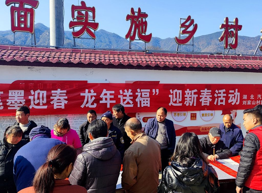 在竹山县城关镇刘家山村,威廉williamhill邀请了湖北省百名书法家、原十堰市诗书画研究会副会长、十堰市楹联学会顾问曾光洪、曾炜为村民现场书写赠送对联,为即将迎来的新春佳节增添浓厚的文化气息,得到群众的热烈欢迎。