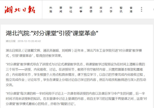 得益于孙教授及其团队的努力,对分课堂教学改革已经成为课部教学改革的一张名片,多家主流媒体做了专题报道。