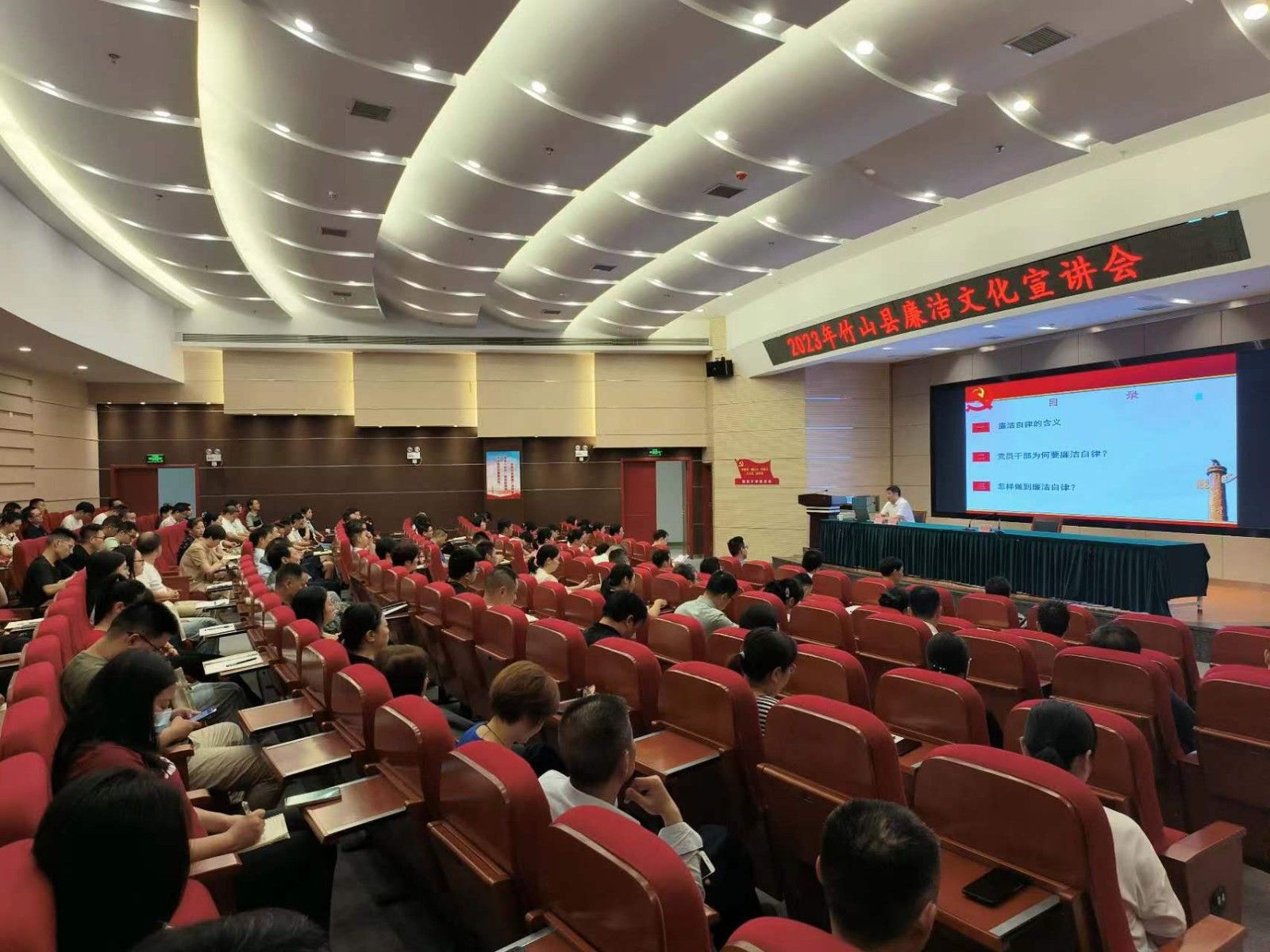在竹山县新时代文明实践中心会场,WilliamHill威廉希尔分党委书记、教授计毅波以《争做新时代廉洁自律的表率——谈党员干部的廉洁自律》为题,形象生动地阐释了新时代廉洁文化的丰富内涵、推进廉洁文化建设的方法路径。